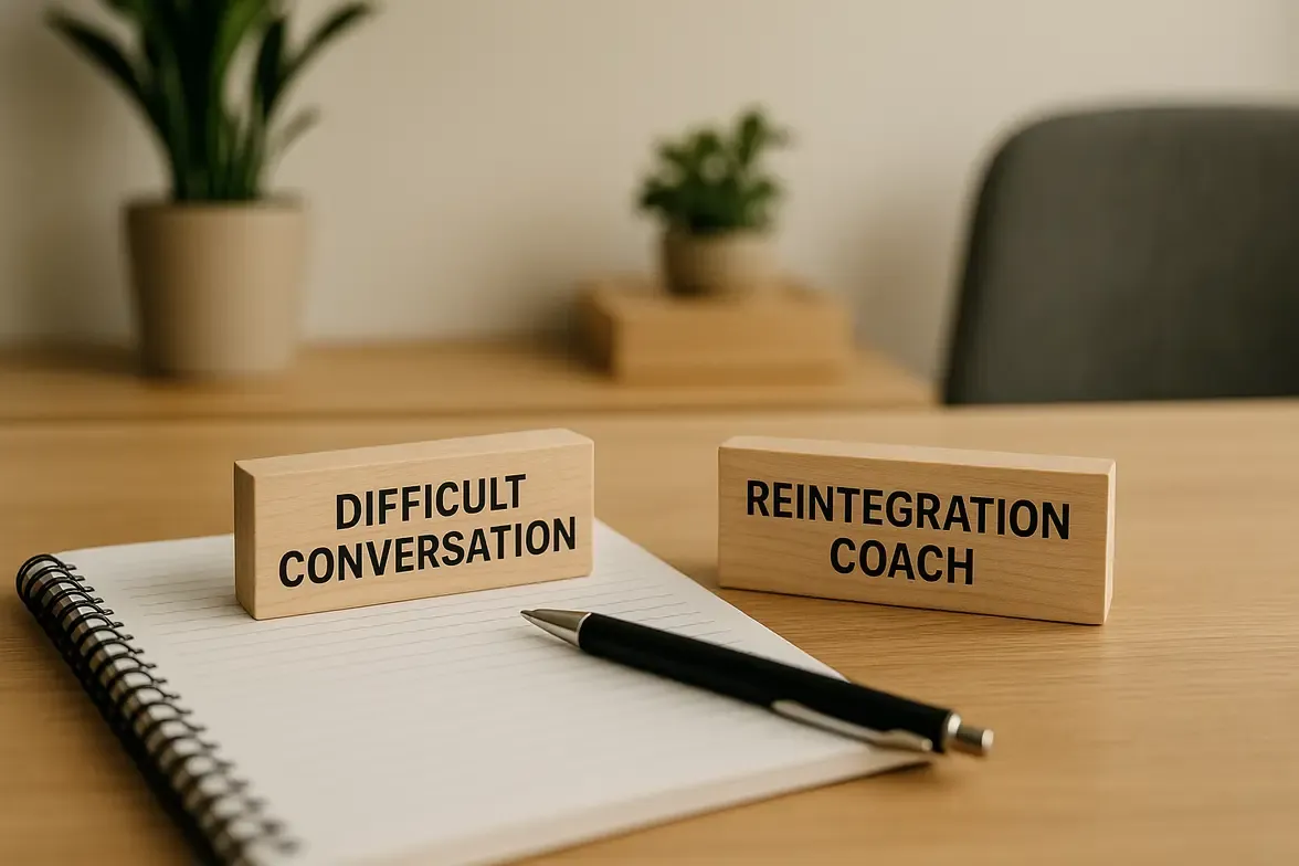 Een re-integratiecoach fungeert als gespreksleider die helpt om weer samen te werken. We bewaken de balans: empathie zonder vaagheid en duidelijkheid zonder oordeel. Dit doen we door het gesprek te structureren en taal te kiezen die ruimte geeft en richting biedt.
